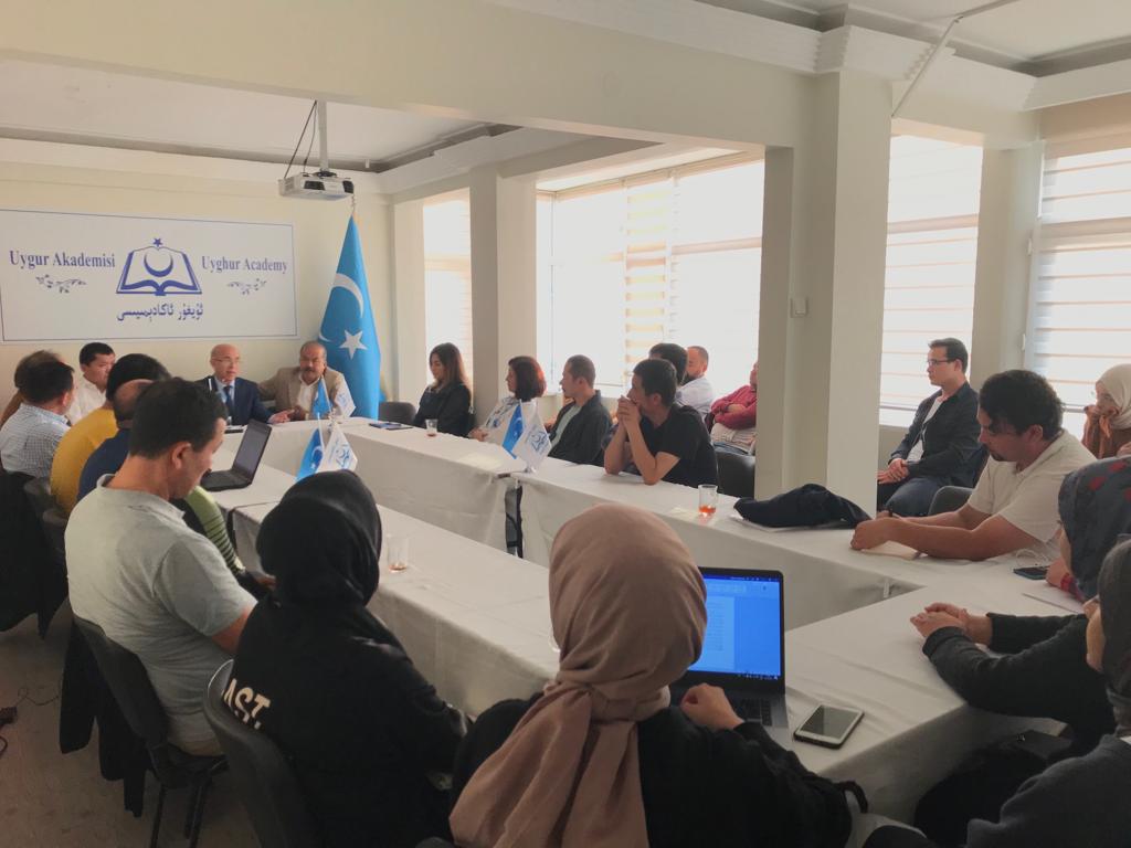 Dünya Uyghur Kurultayı’nın icra kurulu başkanı ve Uyghur İnsan Hakları Kurumu’nun genel müdürü Ömer Kanat Efendi’nin katılımıyla “Amerika-Çin İlişkileri ve Uyghur Sorunu” söyleşi Uyghur Akademisi’nde gerçekleştirildi.