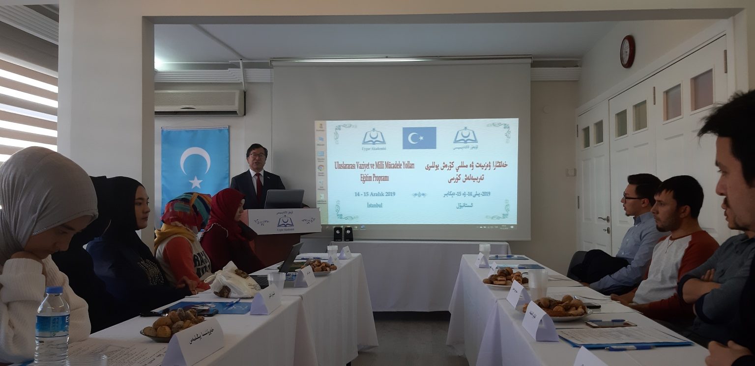 Uygur gençlerinden milletin dayanma gücü olacak seçkin kişileri yetiştirmek için, 14-15 Aralık 2019 günlerinde “uluslararası vaziyeti ve milli mücadele yolları” konusunda iki günlük eğitim programı ilk kez Uygur Akademisi’nin İstanbul Bahçelievler’deki ofisinde düzenlendi. Bu programa Türkiye’nin çeşitli şehirlerinde üniversite eğitimi almakta olan 14 Uygur genç katıldı.